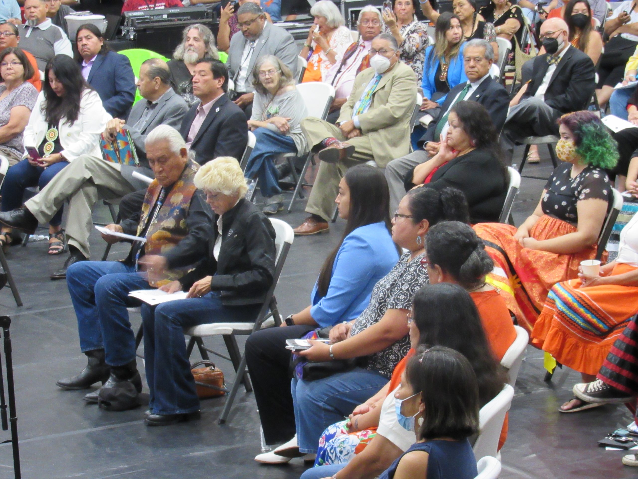 ANADARKO, Okla. — In the packed Riverside Indian School gymnasium on Saturday, July 9, 2022, U.S. Secretary of the Interior Deb Haaland (Laguna Pueblo) and Assistant Secretary of the Interior for Indian Affairs Bryan Newland (Bay Mills Indian Community) began the Road to Healing Tour.