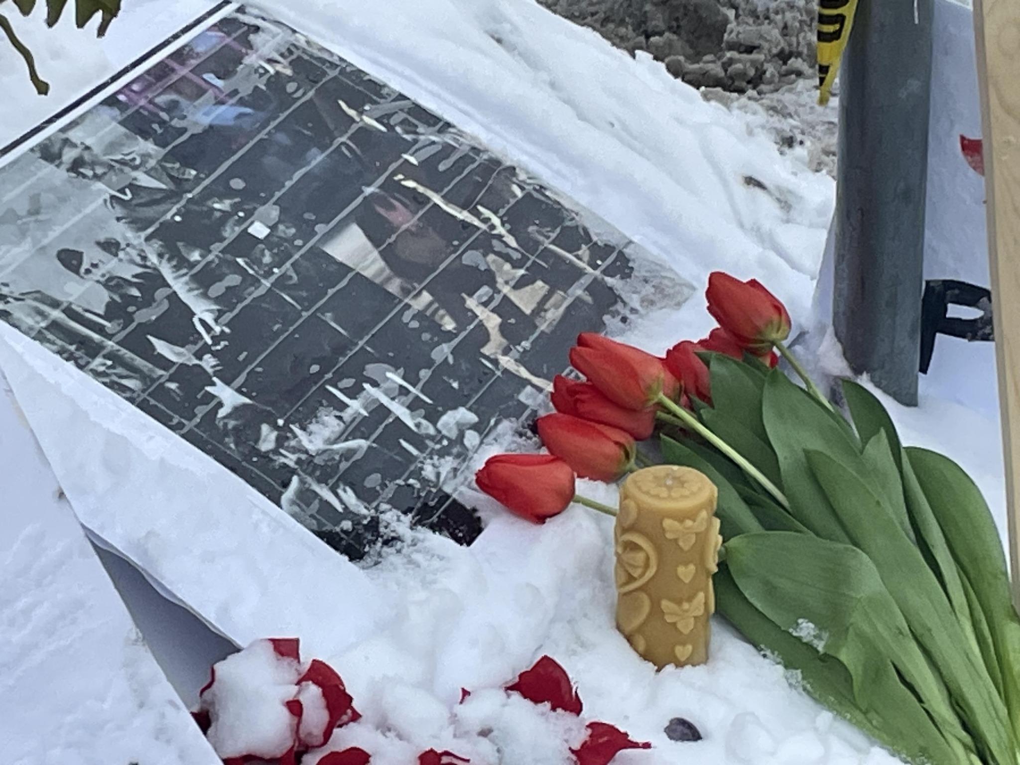 She was one of dozens that turned in hundreds of people who came Sunday afternoon, braving 20-degree temperatures, to leave items or simply stand in silence — some with tears streaming down their faces.