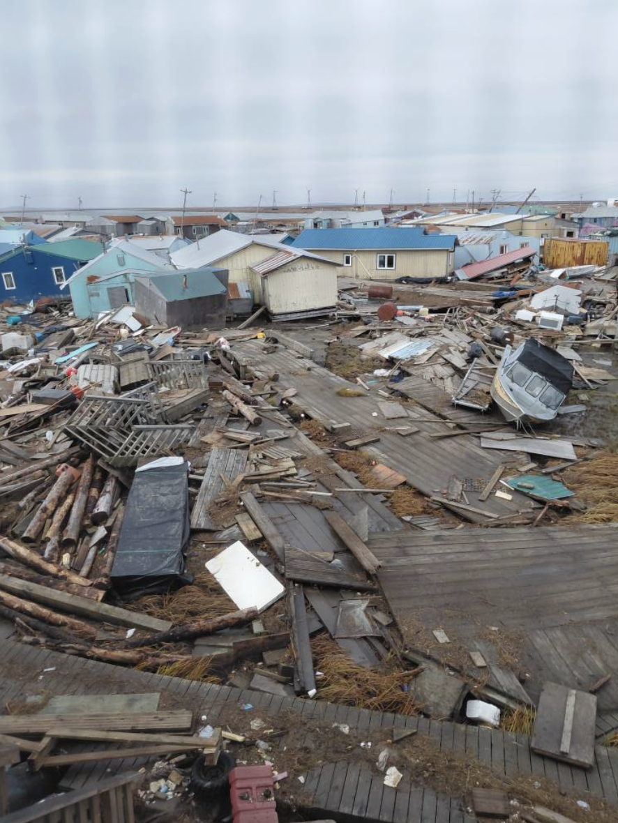 “Several houses floated miles inland – some with people still inside. There are a few houses still intact on higher ground on one side of the village. Everyone else has lost their homes or are facing extensive damage,” Jacqui Lang of Kipnuk wrote on Facebook.