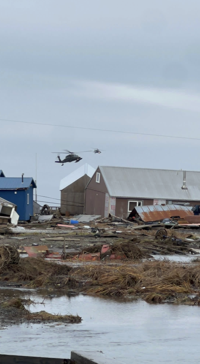 “WE MADE IT OUT OF KIPNUK! Everyone’s good and at the school. The Coast Guard just picked us up and just landed into Bethel,” wrote Kristy Fox of Kipnuk, along with videos of helicopter rescues. “Kipnuk isn’t Kipnuk anymore. I pray they evacuate safely.”