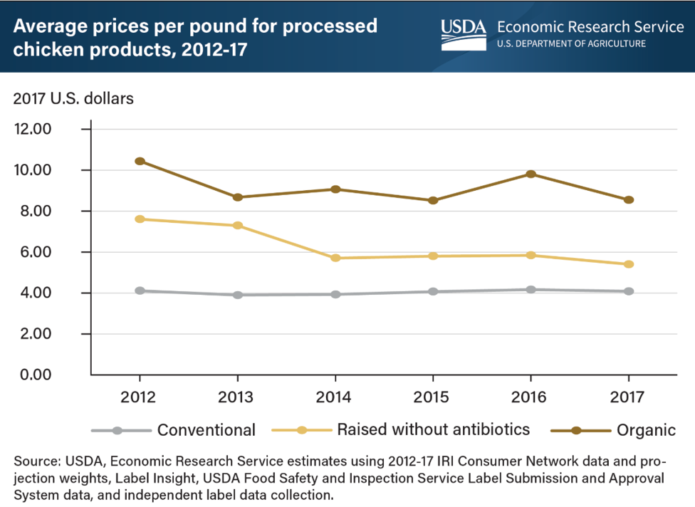 Organic poultry standards require more free-range activity and overall better living conditions. But as anyone who has shopped for poultry knows, organic chicken carries a premium—often 35% higher in price—while free-range chicken can be 50% higher.