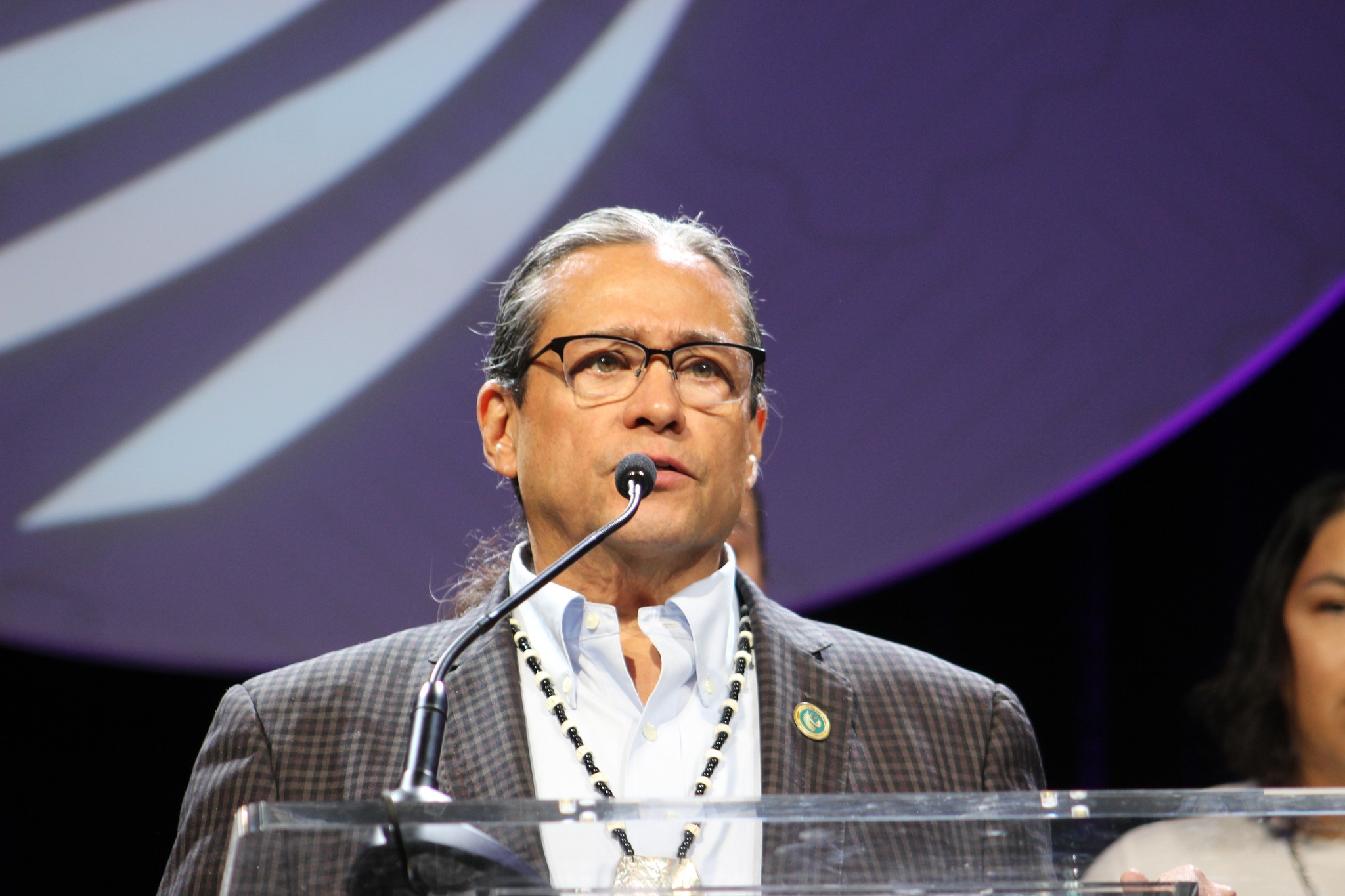NCAI President Mark Macarro (chairman of the Pechanga Band of Luiseño Indians) updated convention attendees on the relationship between NCAI and federal leadership in Washington.