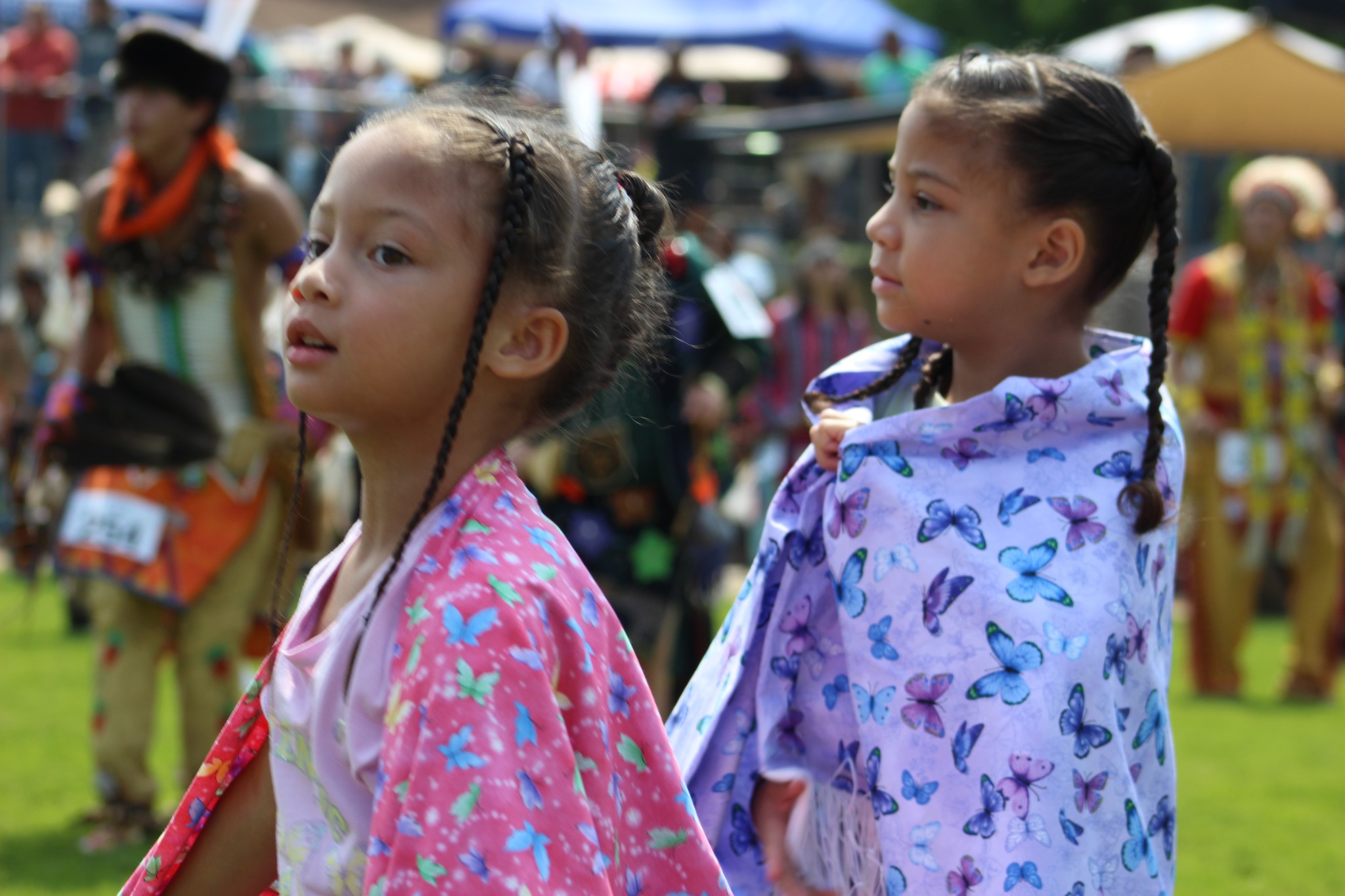 Two Potawatomi sisters enjoying the dance arena. (Photo/Levi Rickert)