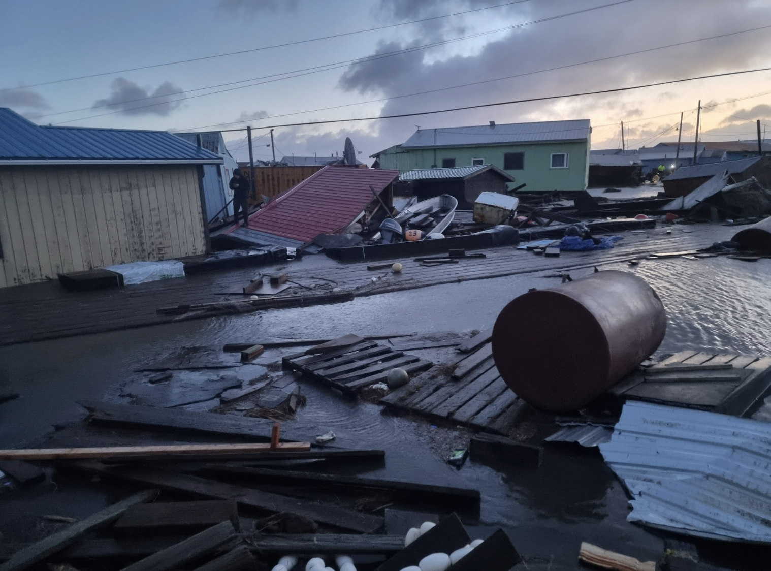 “Several houses floated miles inland – some with people still inside. There are a few houses still intact on higher ground on one side of the village. Everyone else has lost their homes or are facing extensive damage,” Jacqui Lang of Kipnuk wrote on Facebook.