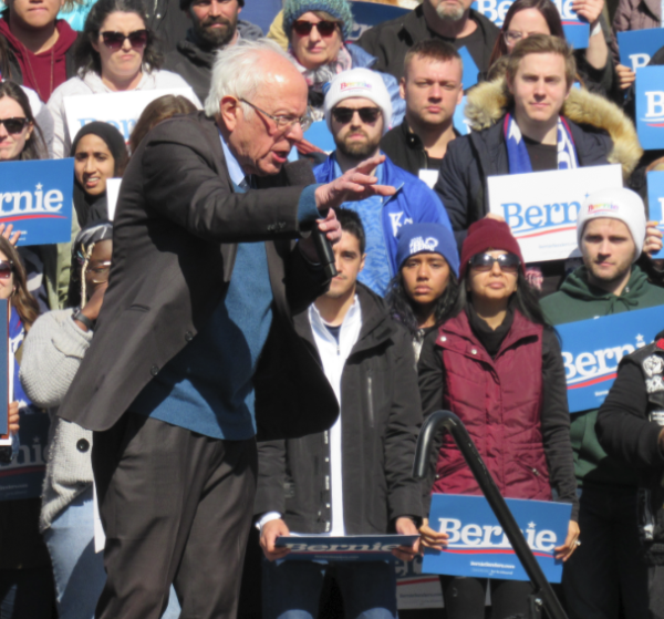 Sen. Bernie Sanders speaking at Calder Plaza in Grand Rapids, Mich. Native News Online photograph by Levi Rickert